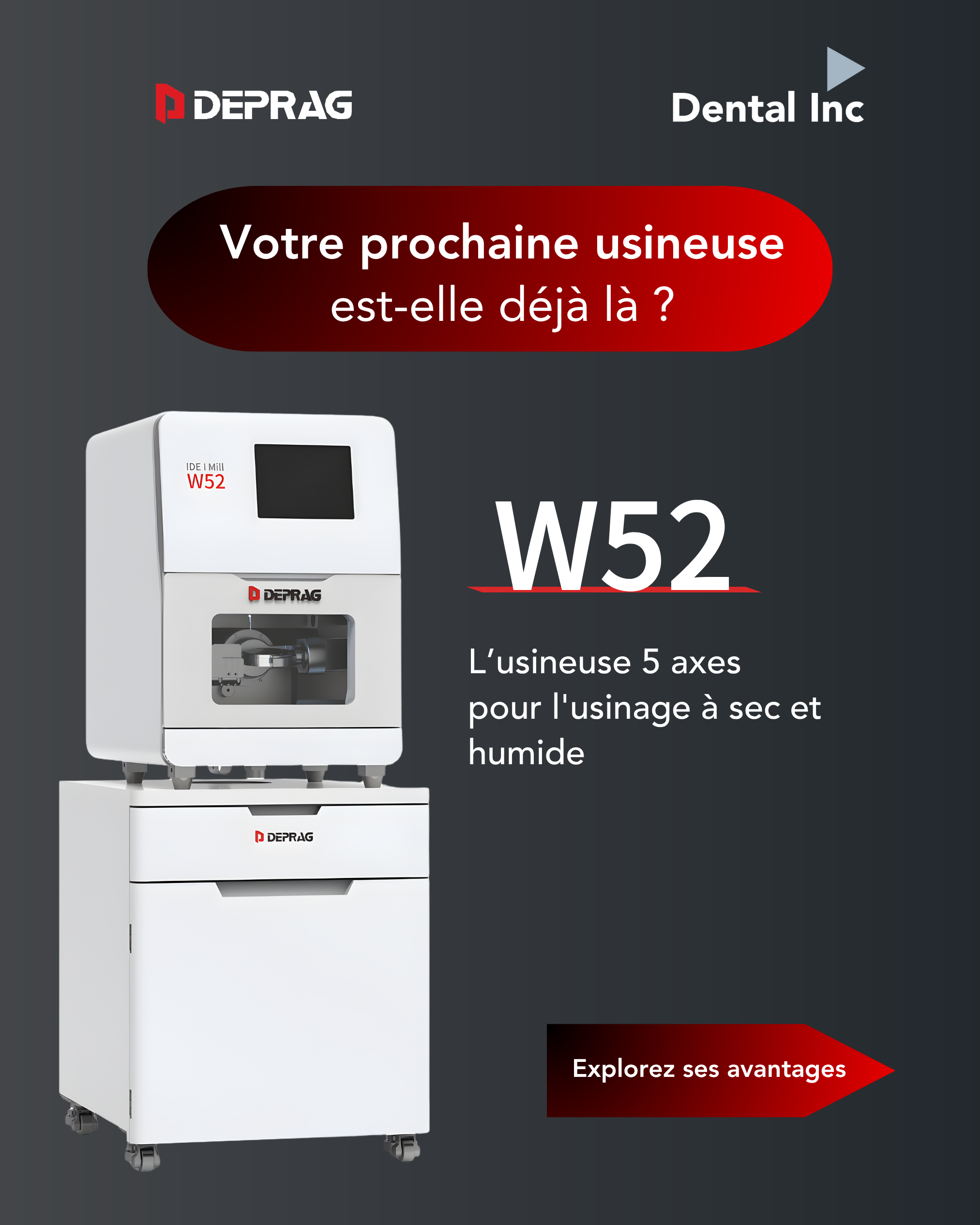 L’usinage métal n’a jamais été aussi accessible qu’aujourd’hui. Avec la W52 de Deprag, distribuée par Dental Inc, les laboratoires dentaires disposent enfin d’une fraiseuse 5 axes capable de combiner performance, polyvalence et simplicité d’utilisation.